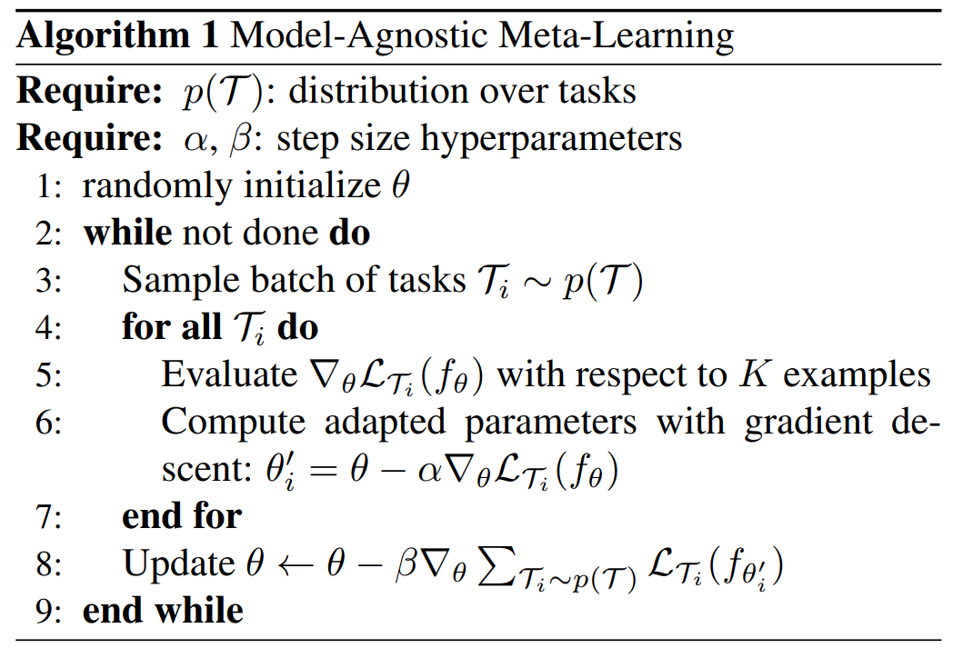 - Outer Loop: Genetic Algorithm (finds good initial parameters, those good at learning)