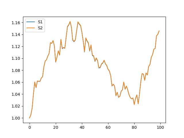 其中 $ r $: 漂移率, $ \sigma $: 波动率, $ dW_t \sim N(\mu=0, \sigma^2=dt) $: 维纳过程 (标准布朗运动)